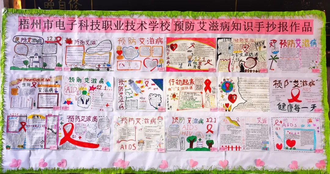 学校组织学生精心制作了防艾主题手抄报,用画笔将艾滋病知识绘入人心,提高艾滋病在学生中的知晓率,在全校形成了解艾滋病、积极预防艾滋病的良好氛围,让更多的同学关心和支持社会防艾事业,并加入到防艾队伍中来。