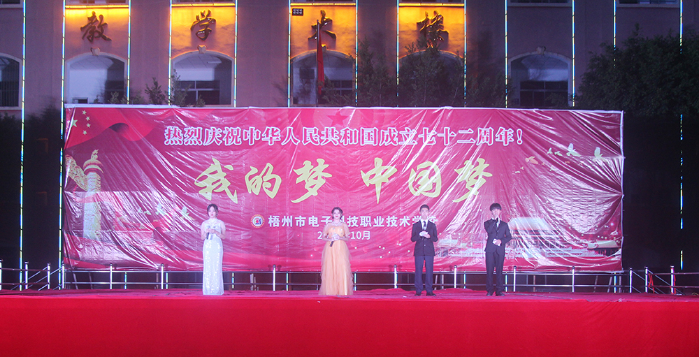 金秋飘香,国盛祥和。为热烈庆祝中华人民共和国成立72周年,10月18日晚,梧州市电子科技职业技术学校2021年“我的梦 中国梦”庆国庆文艺晚会在操场大舞台隆重举行。